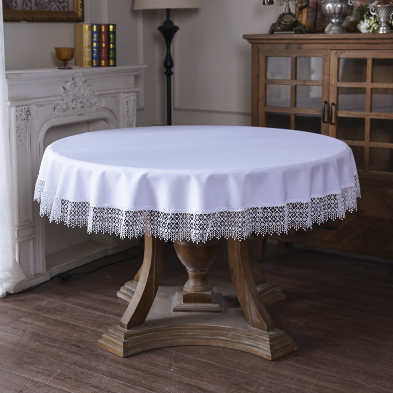 Dizainas: Apvali forma su žavingais plačiais nėriniais kraštuose, pridurianti staltiesei elegancijos.