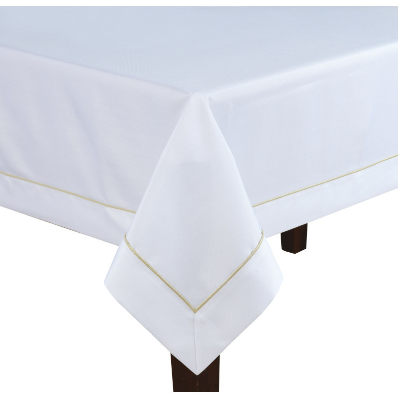 Įneškite prabangos ir elegancijos į savo valgomąjį su mūsų išskirtiniu Baltas Staltiesė "Gold", kuris yra puoštas subtilia auksine gysla. Šis staltiesė yra puikus pasirinkimas tiems, kurie nori pridėti šiek tiek blizgesio prie savo kasdienio ar šventinio stalo dekoro.