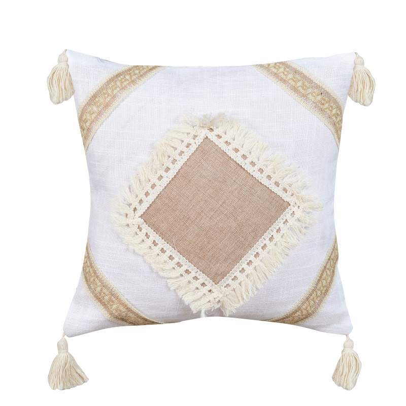 Dizainas: Spalvingi raštai ir žaismingi kutai suteikia pagalvėlei išskirtinį boho stiliaus įvaizdį.